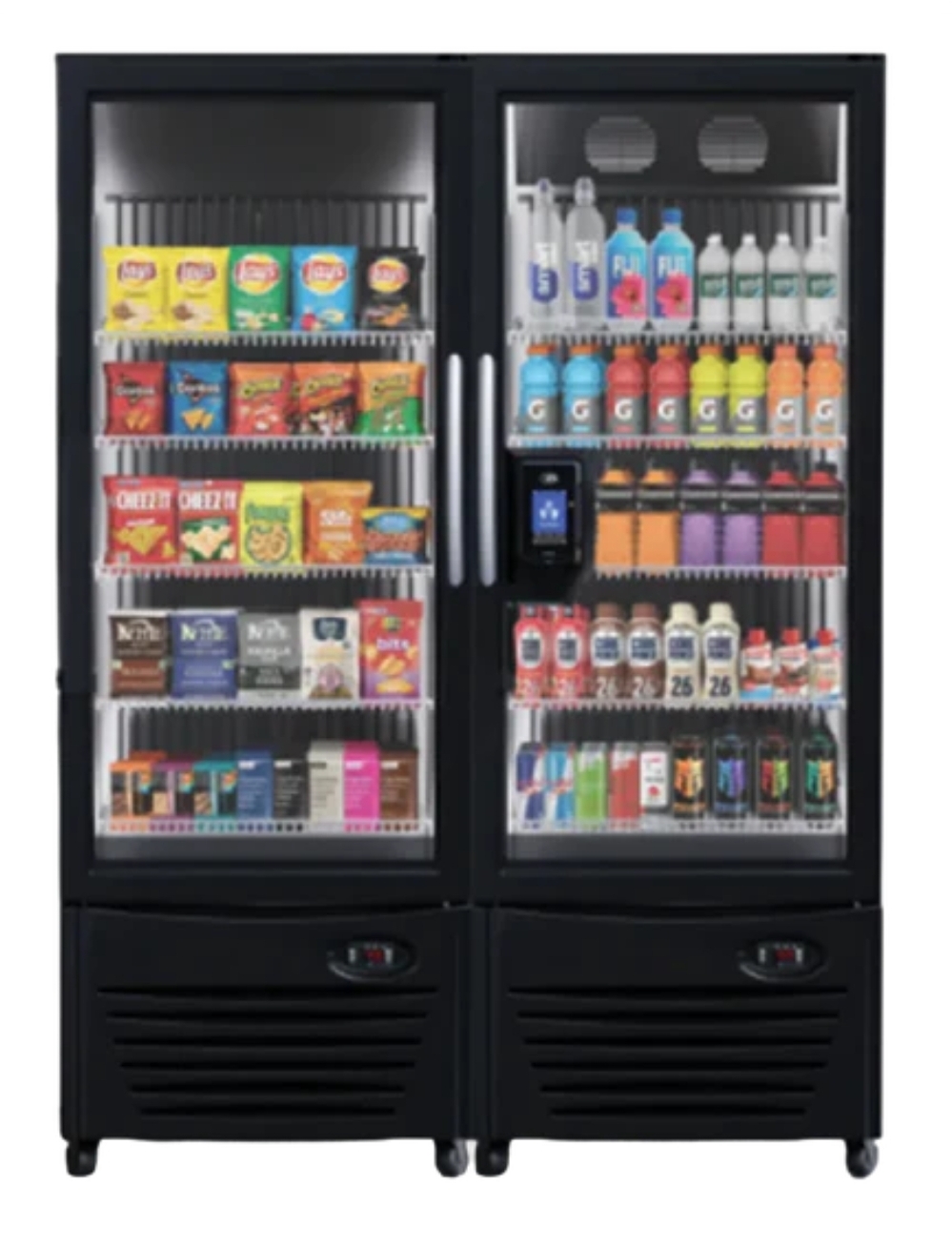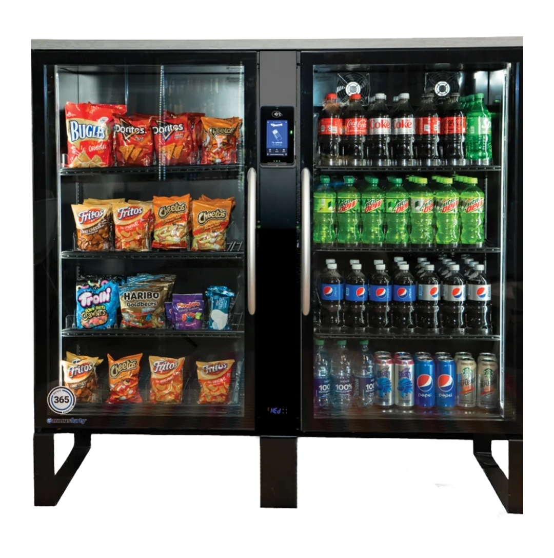 Our combo vending machines are stocked with a curated selection of popular snacks and beverages.